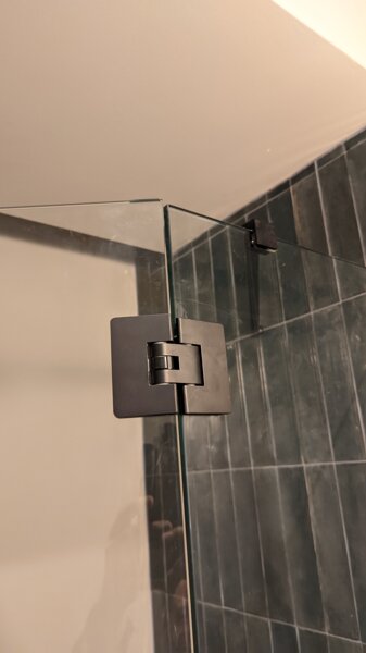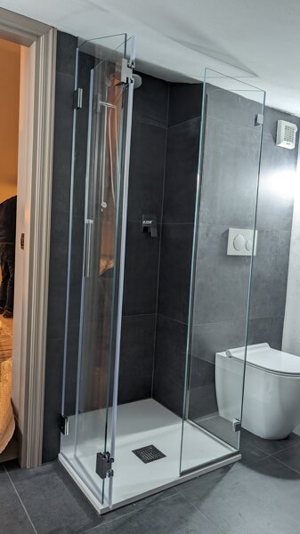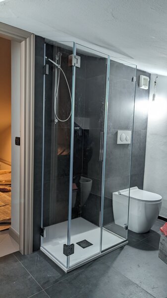 Doccia con parte fissa a 90 gradi e anta su anta a 90 gradi