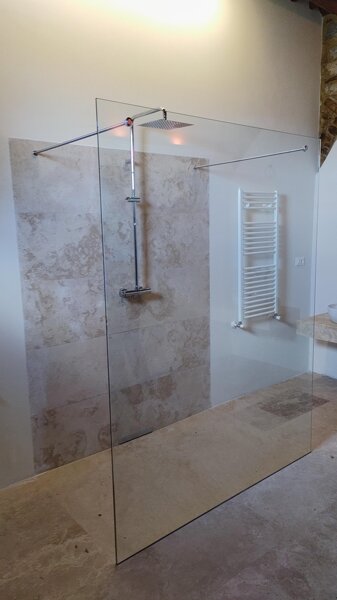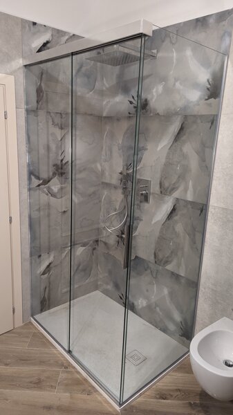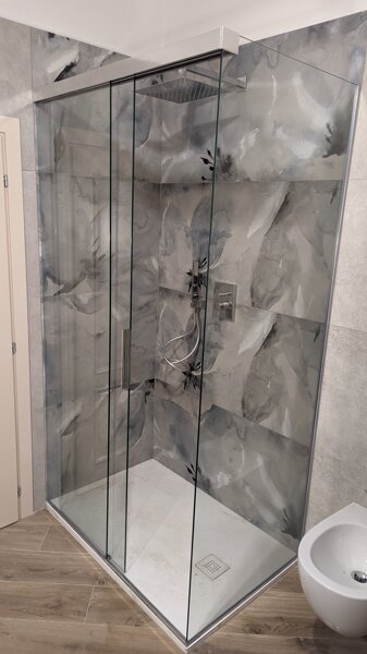 Parete doccia scorrevole in 8mm extrachiaro anti calcare, temperato a filo lucido