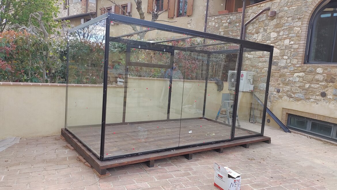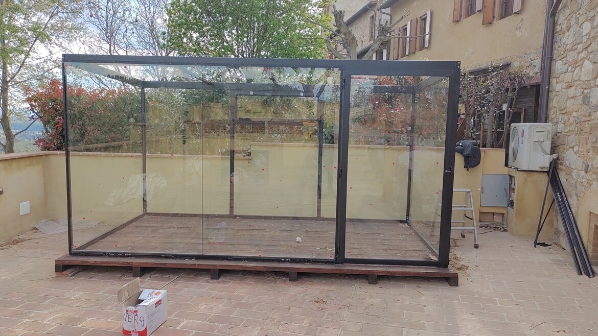 Struttura in acciaio verniciato a polvere con vetro antiinfortunistico 55.2 a filo lucido