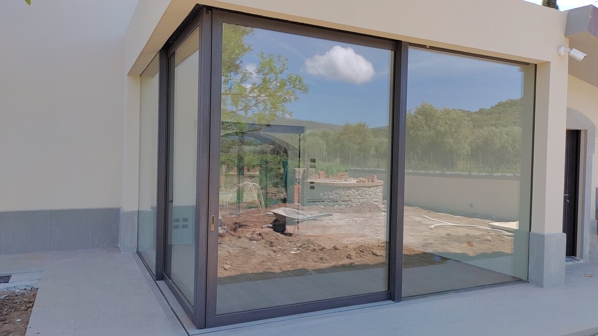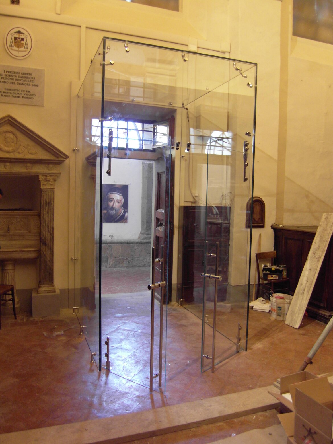 Struttura in acciaio con doppia anta scorrevole e vetro anti intrusione di sicurezza