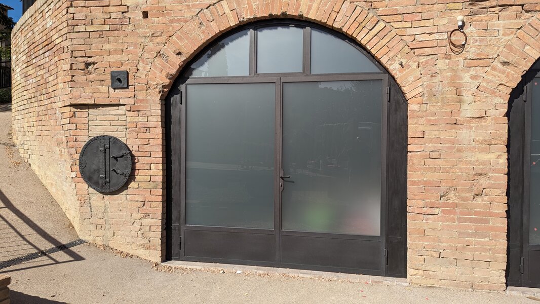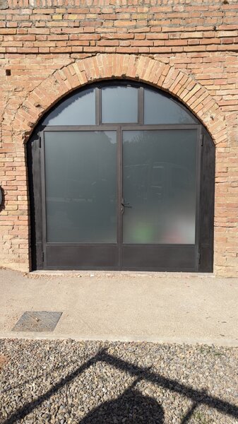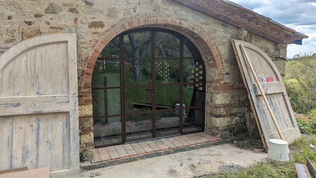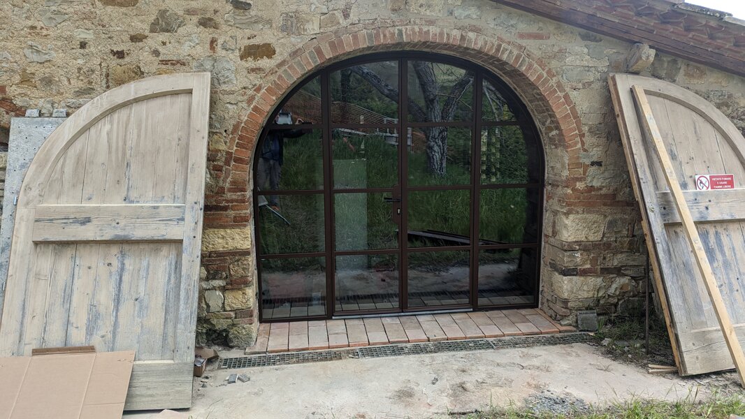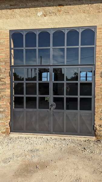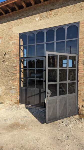Porta ad arco in ferro color ruggine con vetro termico antinfortunistico